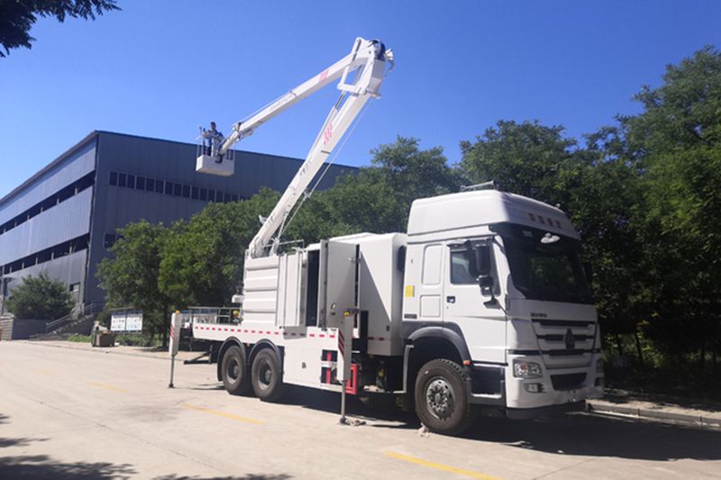 - El sistema hidráulico de la plataforma aérea de trabajo plegable es impulsado cuando toma fuerza en el chasis del camión.