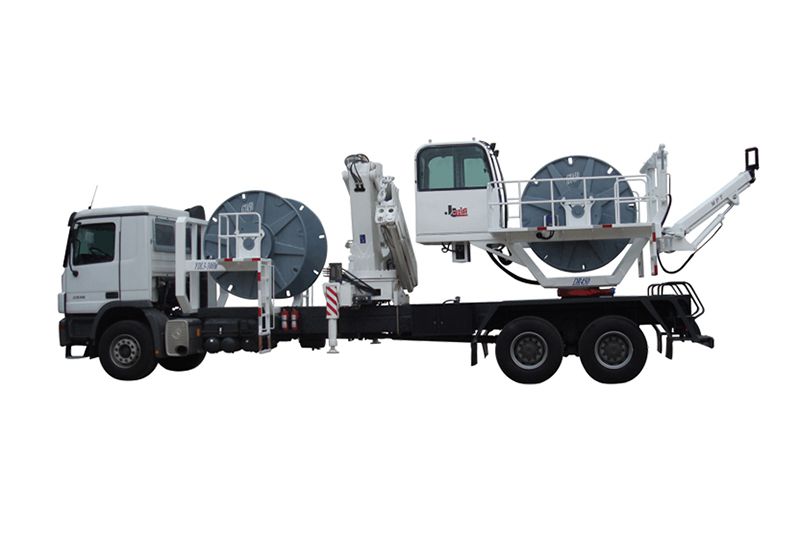 El camión está equipado con pistones hidráulicos y dispositivos de elevación que son excelentes al momento de realizar un cambio seguro, estable y eficiente de los rollos de cable;