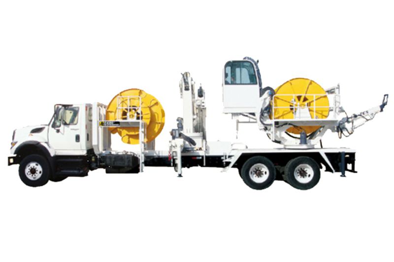 - El camión enrollador de cable está equipado con un brazo hidráulico que se extiende para realizar operaciones más flexibles;