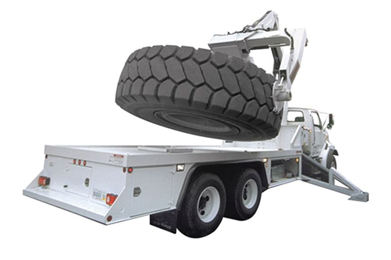 Manipulador de neumáticos sobre camión para equipos grandes de minería y construcción