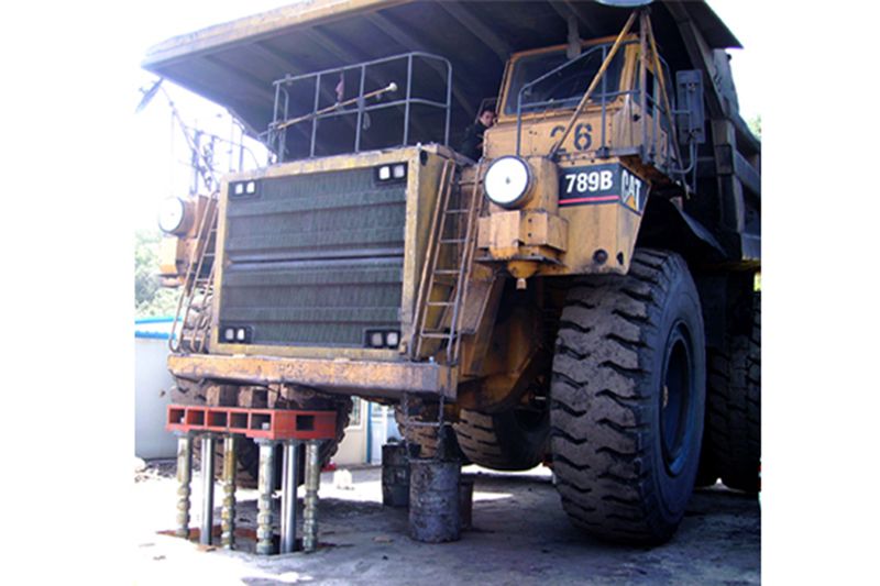 Los gatos de foso son equipos auxiliares utilizados para elevar grandes vehículos mineros del suelo para facilitar el cambio de neumáticos y las reparaciones del tren de rodaje. Los gatos o elevadores de foso desarrollados independientemente por JC-Hydraulic constan de una estación de bombeo hidráulica, una cabina del operador de control hidráulico y eléctrico, dos gatos (de elevación), una base de foso de hormigón y un sistema de drenaje. Nuestros componentes hidráulicos clave son importados y disponemos de una amplia gama de piezas de repuesto para que nuestros gatos de foso puedan satisfacer los requisitos de nuestros clientes en cuanto a capacidad de elevación, altura de elevación y métodos de funcionamiento.